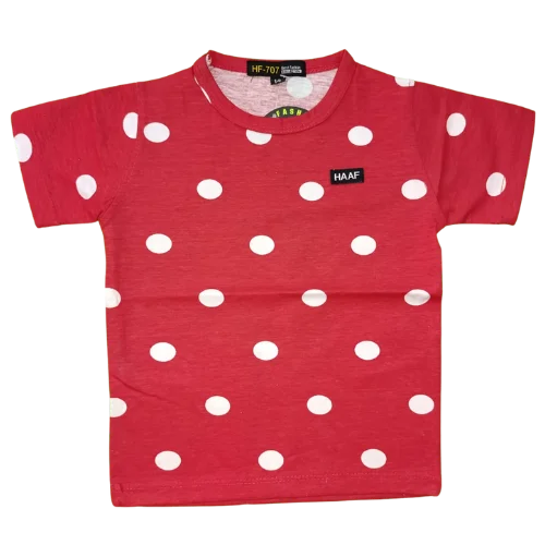Brighten up your little girl’s wardrobe with this charming red polka dot cotton t-shirt. Made from soft, breathable cotton fabric, it ensures all-day comfort while keeping her cool during playtime or outings. The vibrant red color paired with classic white polka dots adds a fun, cheerful look that’s perfect for casual wear, parties, or family gatherings. Featuring short sleeves and a crew neckline, this t-shirt is easy to pair with shorts, jeans, or skirts for a variety of cute outfits. Its lightweight and durable construction makes it ideal for everyday use. Available in sizes 9M (14), 1Y (16), and 2Y (18), this polka dot tee is a must-have for stylish little trendsetters.